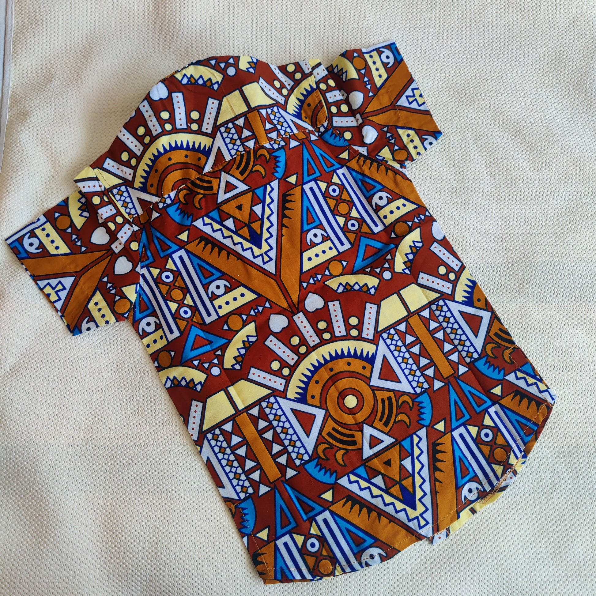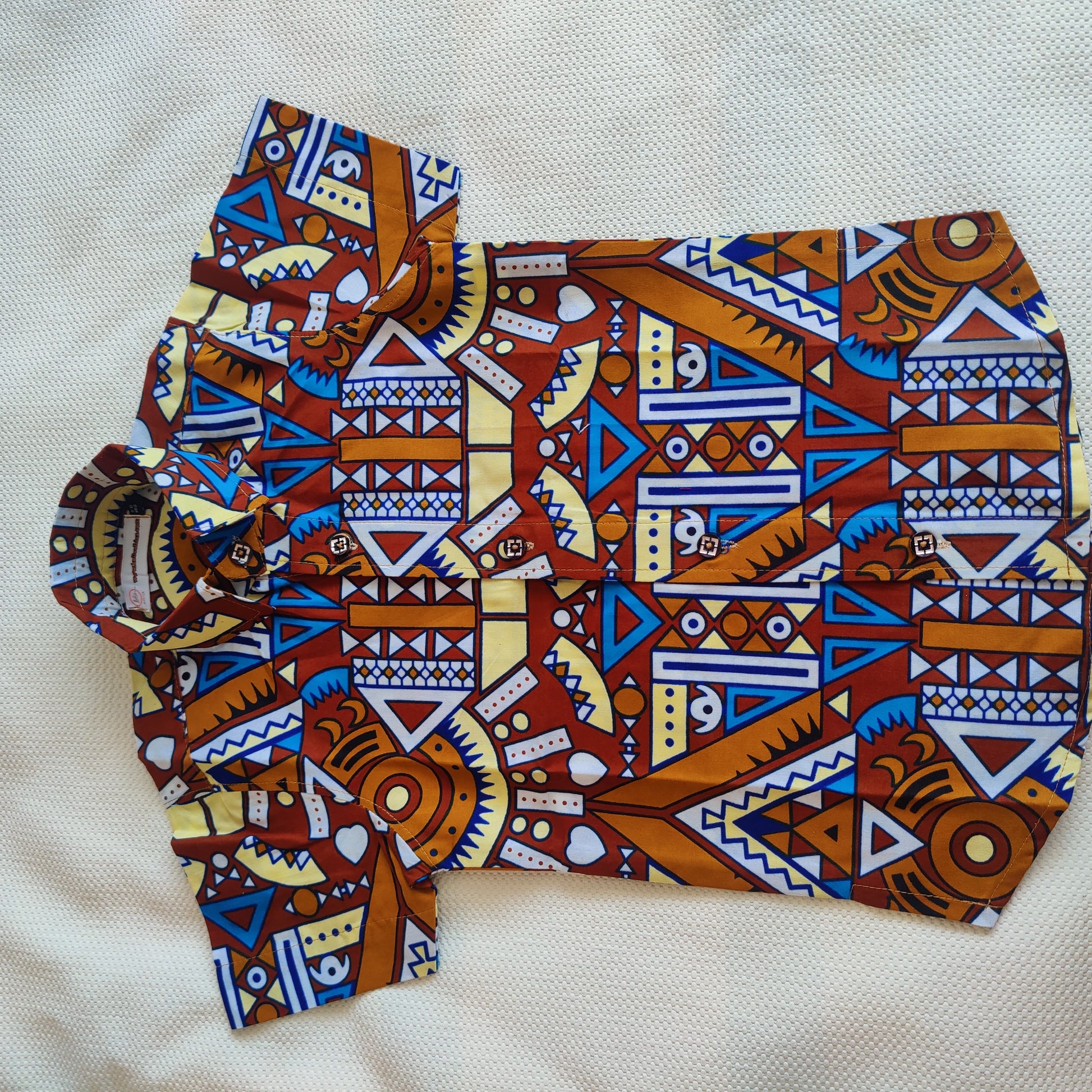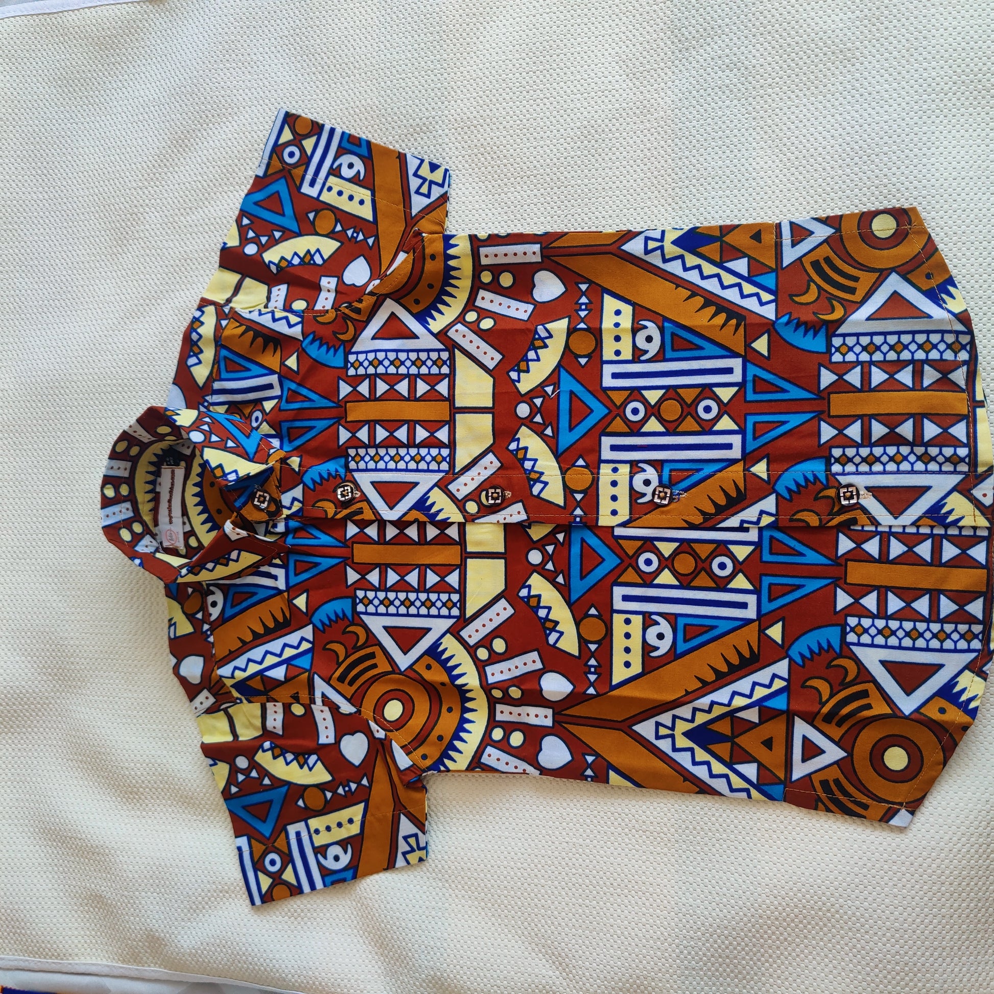 Short sleeve shirt with a neat stitches and buttons in the front.