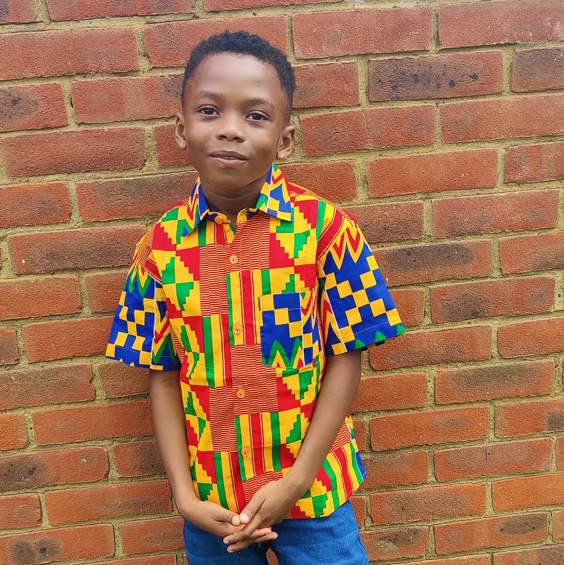African Print Boys Shirt/ Blue Kente