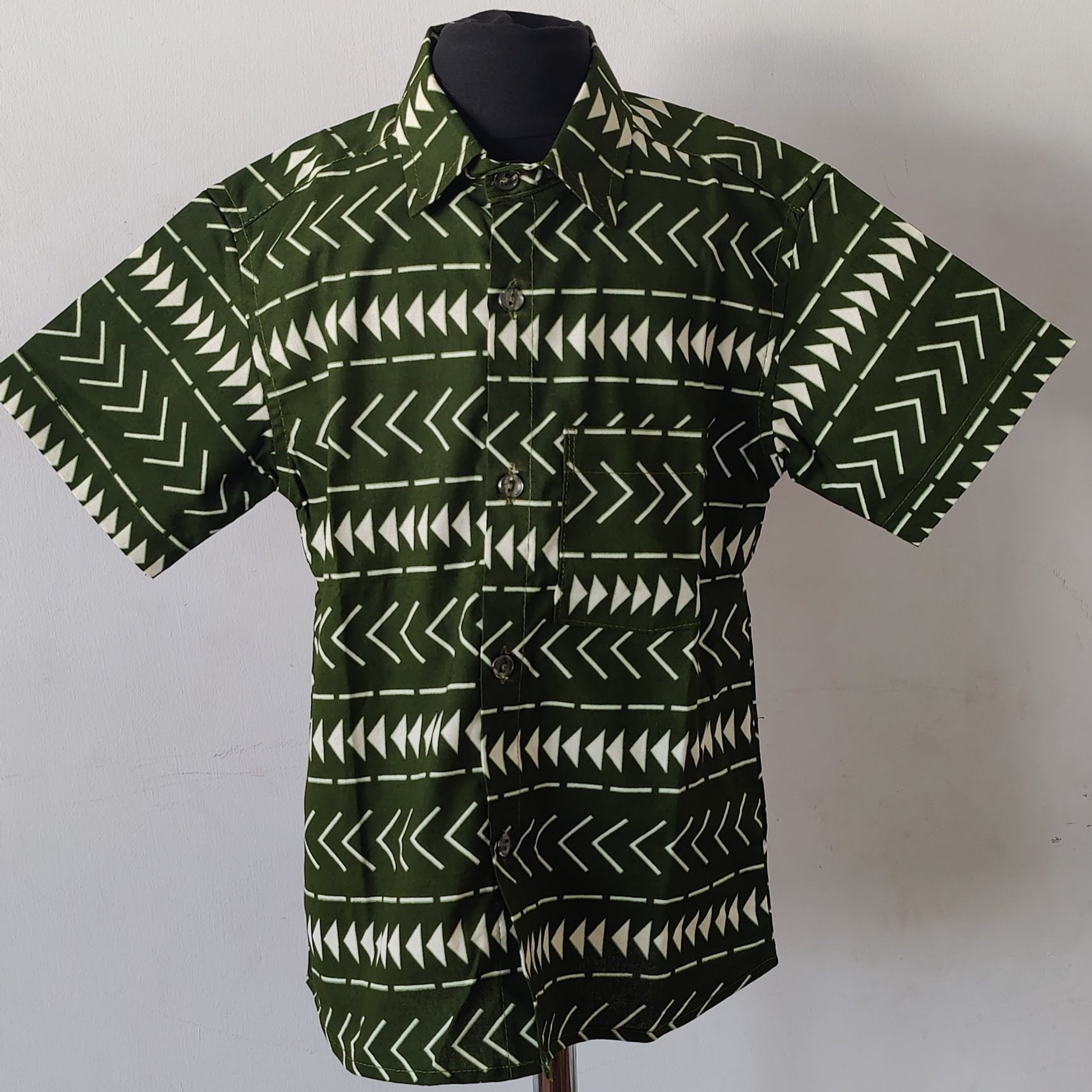 African Print Boys Shirt/ Zulu Green
