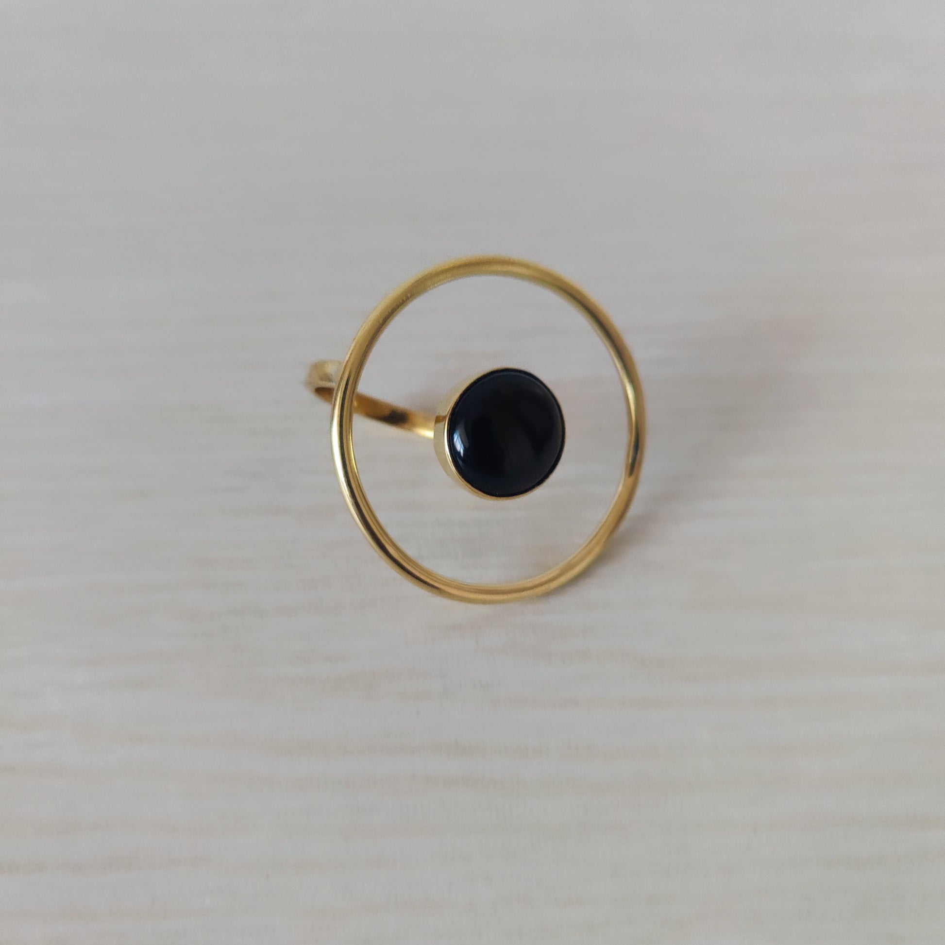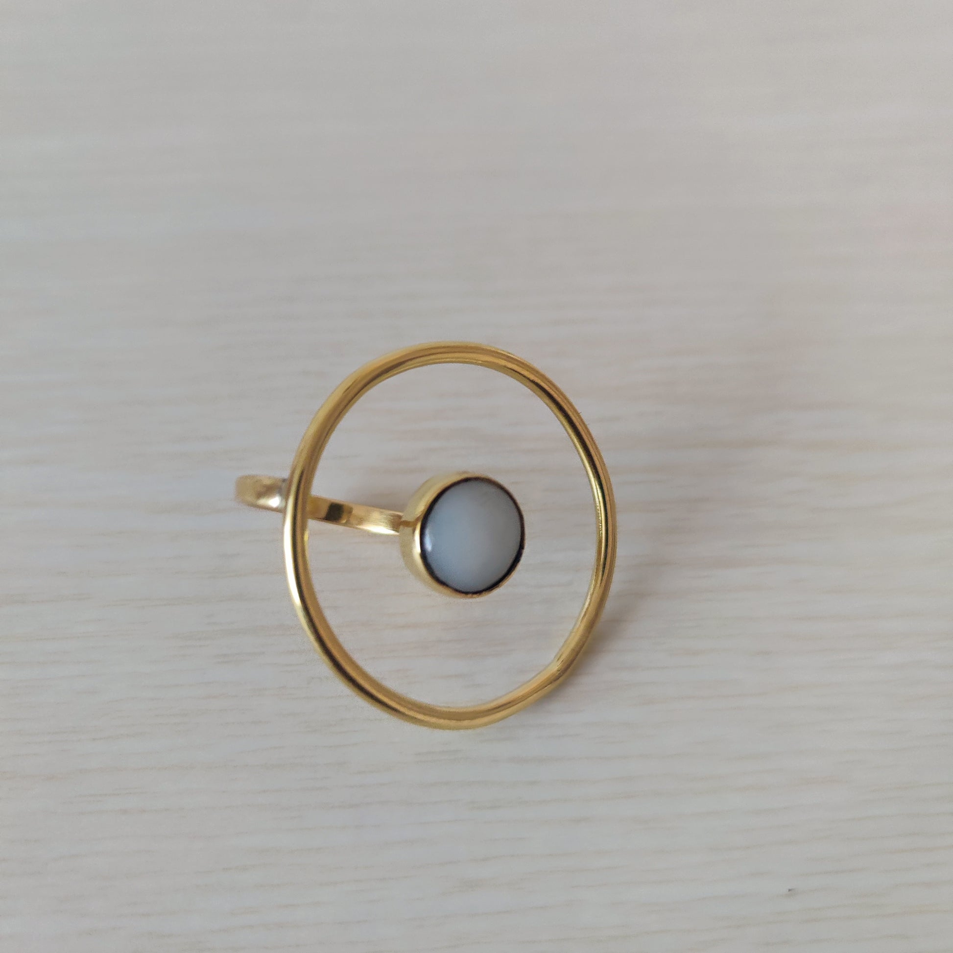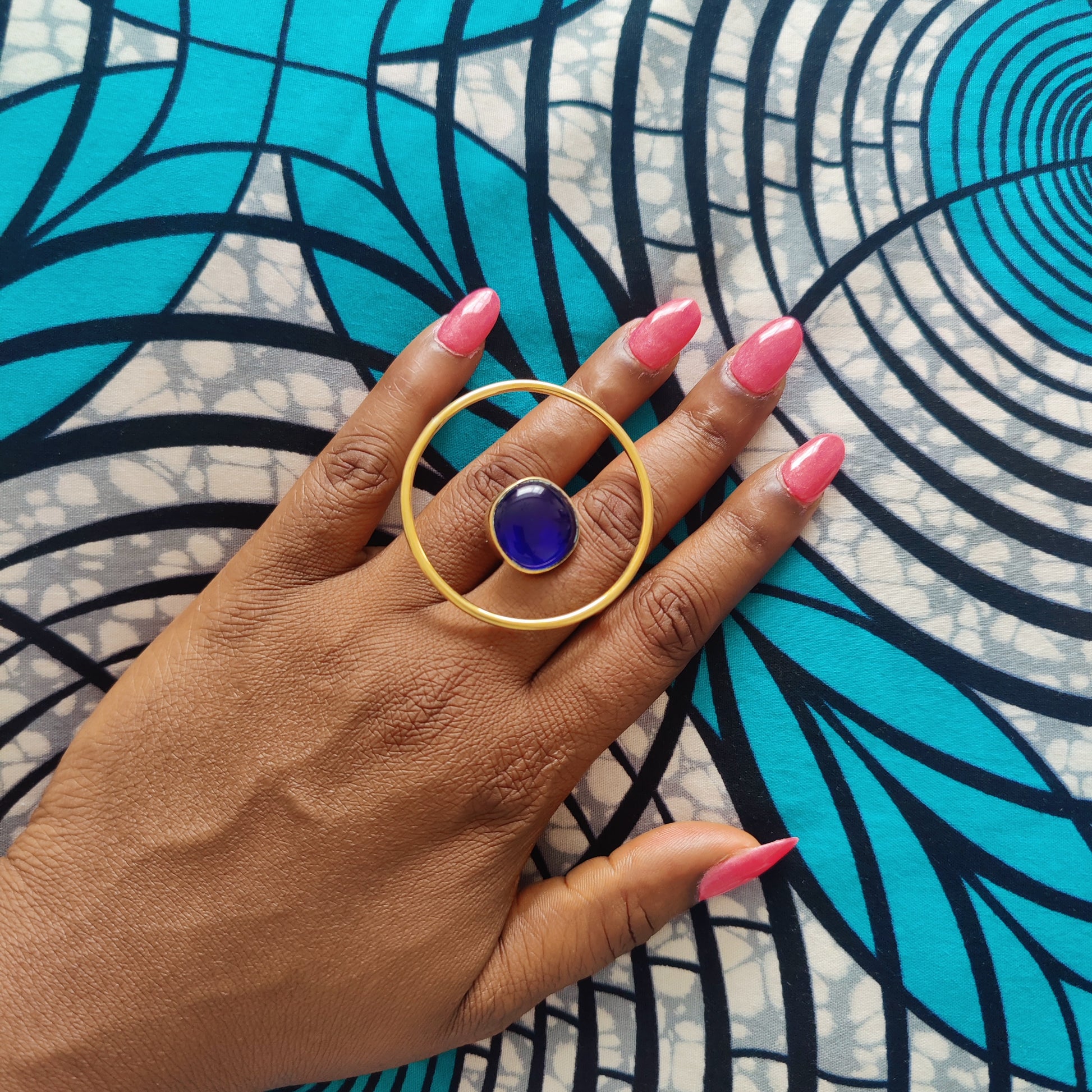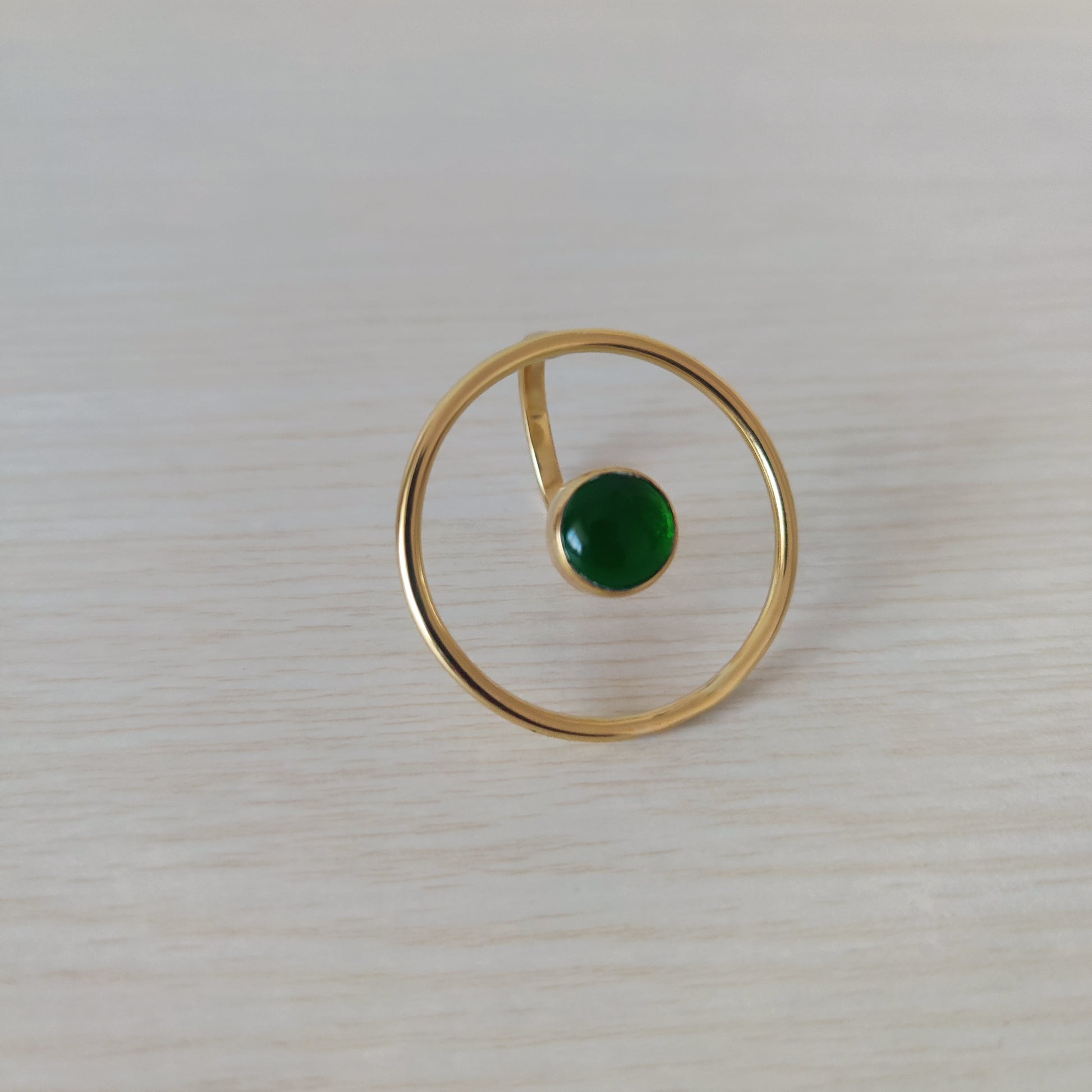 Statement Ring with Coloured Stone Chunky Golden Brass Adjustable Ring