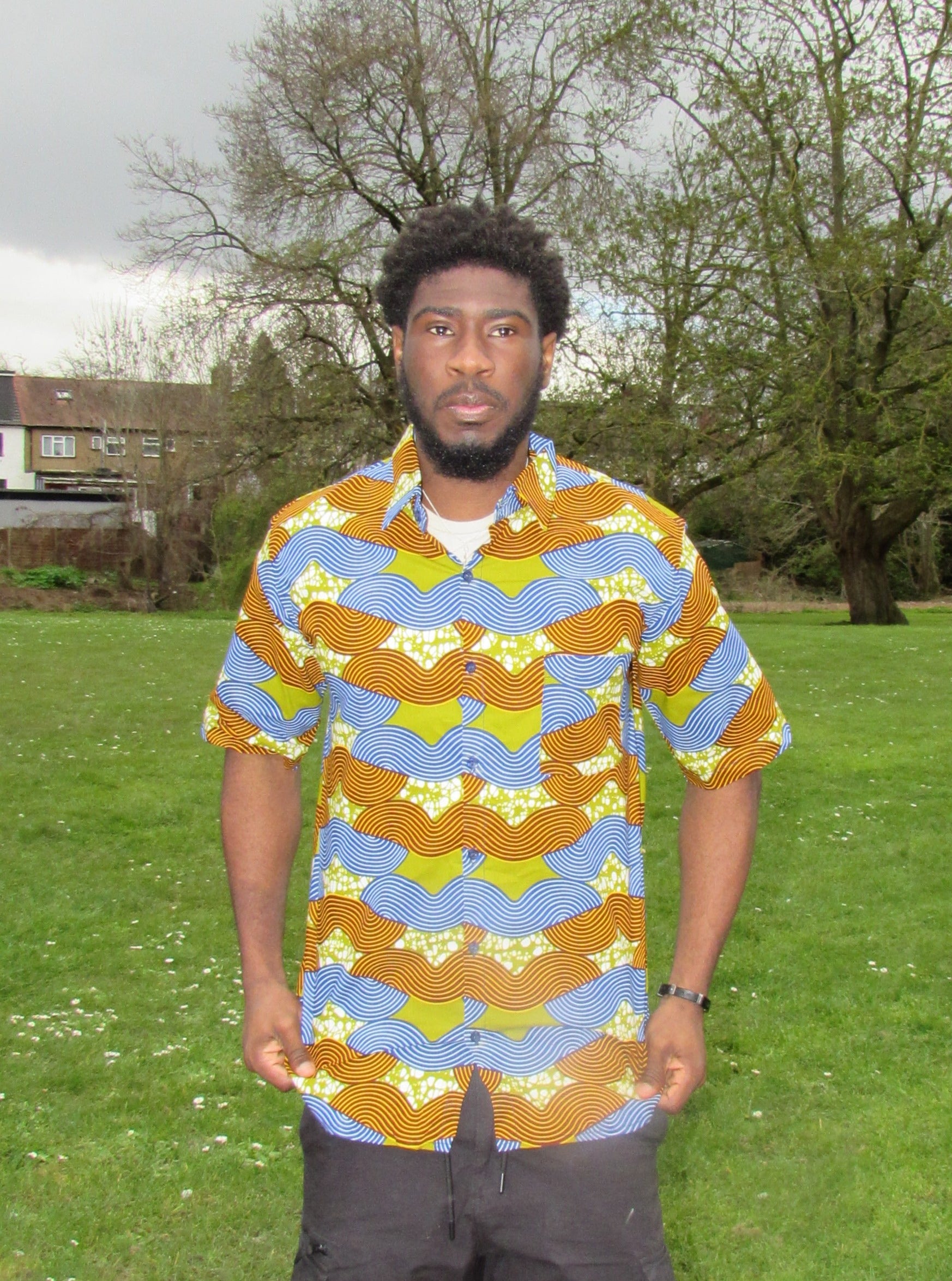 Get ready to make a statement with this Men's African Print Short Sleeve Shirt! Handmade with high-quality cotton from Ghana, this short sleeve shirt features neat stitches and front buttons. The vibrant colors in the fabric make it easy to pair with any shorts or trousers. For a casual look, throw on some khaki shorts or jeans. And for a more formal occasion, pair it with your favorite trousers. This shirt is versatile, stylish, and definitely a must-have for any wardrobe
